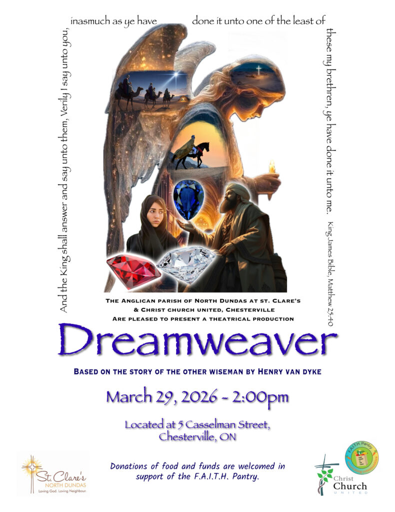 Come out for an afternoon of family fun on March 22, 2026, 1:00pm at the Chesterville Bowline Alley. Pre-registration is required (see sign-up sheet at the back of the Sanctuary). Cost is $15/per person for 2 games and shoe rentals (children under 12 are free, but please register). There are prizes to be won! For more information contact Janice Paquette at 613-448-2053.