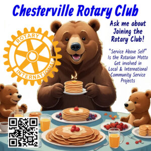 The Chesterville Rotary Club is serving up fresh pancakes, pure maple syrup, ham, berries, ice cream and more. Come out and join us for an evening of friends, family and feasting.