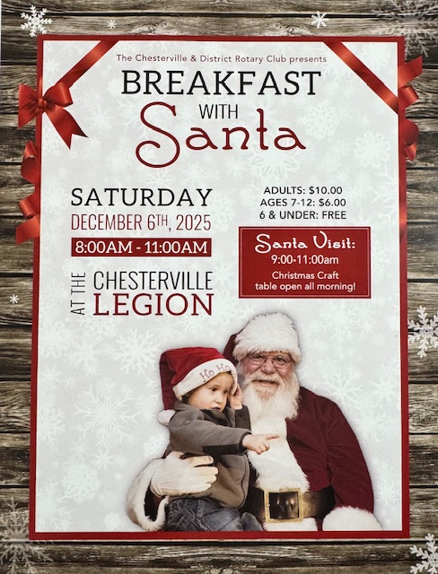 CCU Bakers will again be hosting several tables of baked goods for sale as part of the Annual Breakfast With Santa, hosted by the Chesterville Rotary Club. This exciting family event takes place at the Chesterville Legion from 8:00am to 11:00am on Dec 6th. Santa himself will arrive around 9:00am (hint, hint) and he’s looking forward to seeing you!