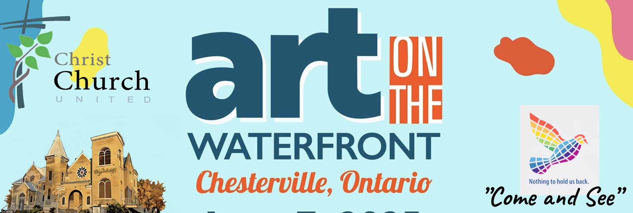 Christ Church United will again open our doors to participate in the Annual Art-on-the-Waterfront Event in Chesterville. We are excited this year to open our doors. Mary Royal-Duczek will speak on the future of the United Church. Volunteers are needed to help with planning - please contact us to get involved! Planning meetings will be added to the calendar and announced. We welcome your ideas!